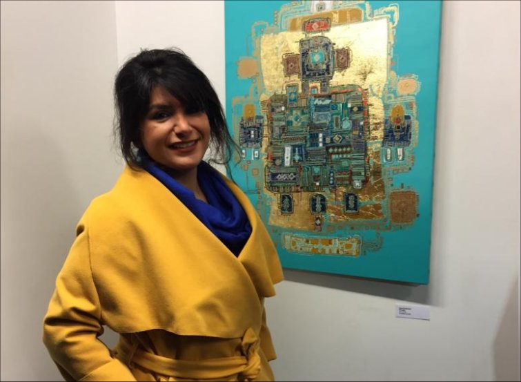 Issue du graphisme et du design, l’artiste iranienne Negin Rouhbakhsh propose une œuvre singulière mêlant la peinture et le travail de la feuille d’or. La géométrie des formes et les couleurs chatoyantes et irisées habillent des toiles aussi imposantes que délicates.